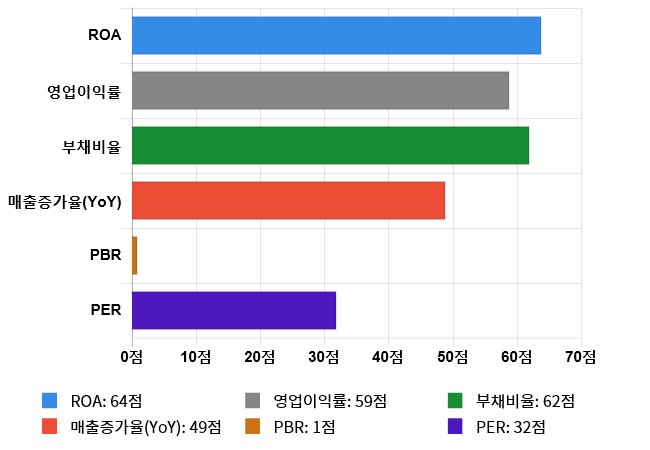 (위의 AI인공지능 점수는 재무 데이터를 기반으로 전체 상장 종목과 비교/분석하여 도출한 점수로 높은 점수가 반드시 높은 수익률을 보장하지 않습니다.)