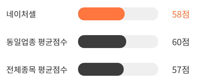이는 동일 업종 평균점수인 60점보단 낮지만, 시장 평균점수인 57점을 상회했다.