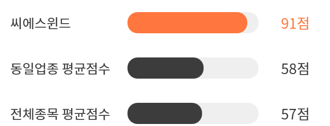 AI 인공지능 분석을 통한 씨에스윈드의 종목 종합 스코어는 91점을 기록했다.