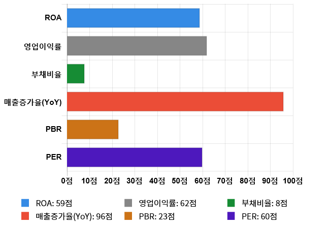 (위의 AI인공지능 점수는 재무 데이터를 기반으로 전체 상장 종목과 비교/분석하여 도출한 점수로 높은 점수가 반드시 높은 수익률을 보장하지 않습니다.)