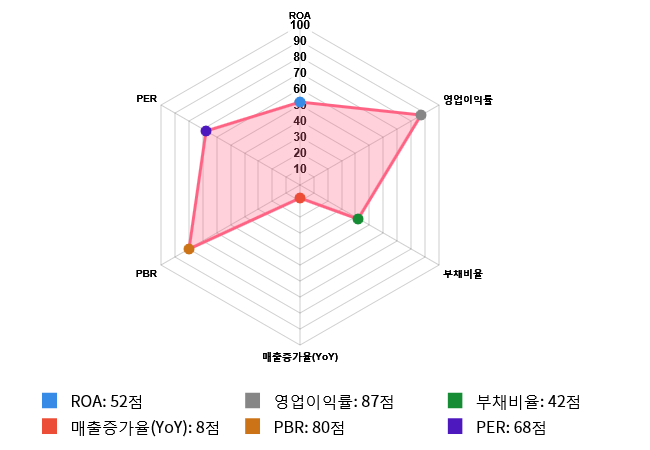 매출증가율(YoY)과 부채비율은 아쉬움을 나타냈다.