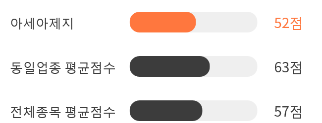 AI 인공지능 분석을 통한 아세아제지의 종목 종합 스코어는 52점을 기록했다.
