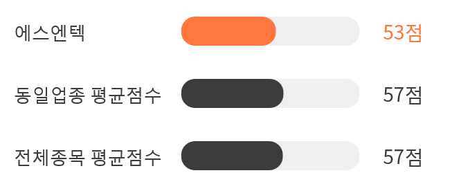이는 동일 업종 평균점수인 57점과 시장 평균점수인 57점를 하회하는 수치였다.