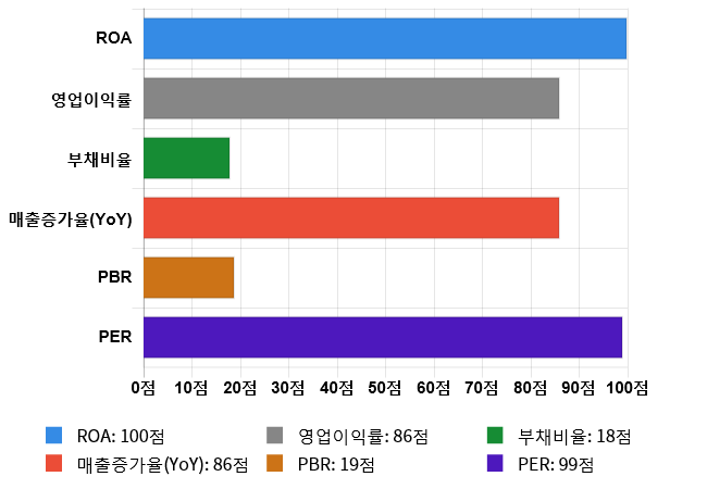 (위의 AI인공지능 점수는 재무 데이터를 기반으로 전체 상장 종목과 비교/분석하여 도출한 점수로 높은 점수가 반드시 높은 수익률을 보장하지 않습니다.)