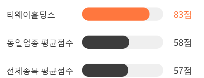 AI 인공지능 분석을 통한 티웨이홀딩스의 종목 종합 스코어는 83점을 기록했다.