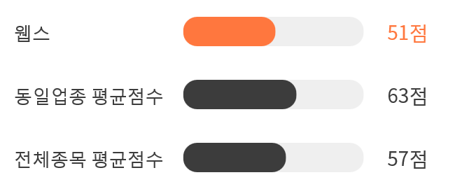 AI 인공지능 분석을 통한 웹스의 종목 종합 스코어는 51점을 기록했다.