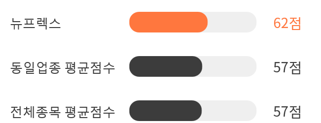 AI 인공지능 분석을 통한 뉴프렉스의 종목 종합 스코어는 62점을 기록했다.