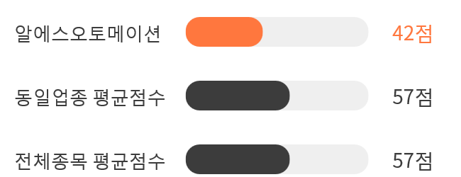 AI 인공지능 분석을 통한 알에스오토메이션의 종목 종합 스코어는 42점을 기록했다.