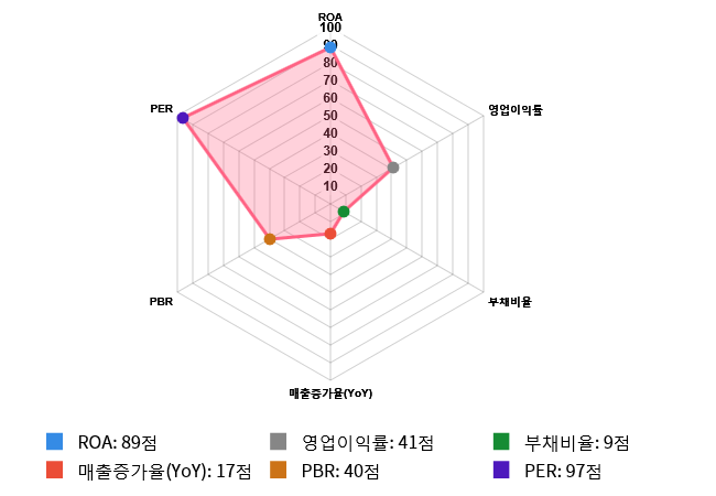 그러나 부채비율과 매출증가율(YoY)은 아쉬움을 나타냈다.
