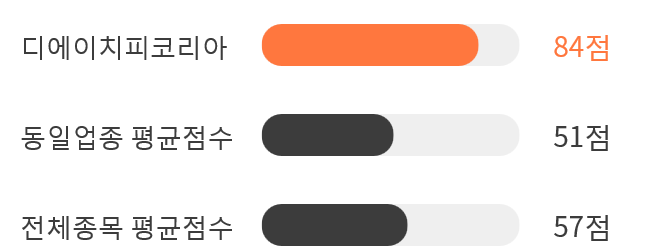 이는 동일 업종 평균점수인 51점과 시장 평균점수인 57점를 상회하는 수치였다.