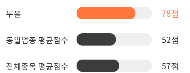 AI 인공지능 분석을 통한 두올의 종목 종합 스코어는 78점을 기록했다.