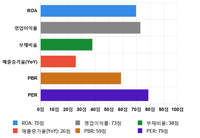 (위의 AI인공지능 점수는 재무 데이터를 기반으로 전체 상장 종목과 비교/분석하여 도출한 점수로 높은 점수가 반드시 높은 수익률을 보장하지 않습니다. 위의 자료는 당사의 추천 종목이 아니며, 투자 시 참고용으로 제시해드리는 것입니다.)