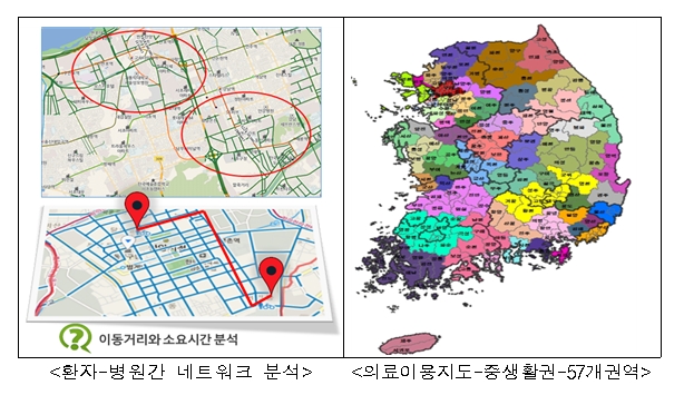 의료기관 이용자와 요양기관 간 네트워크 분석을 통해 이동거리, 소요시간 등을 산출한 자료를 국민건강보험공단이 이용했습니다.
