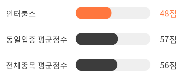 AI 인공지능 분석을 통한 인터불스의 종목 종합 스코어는 48점을 기록했다.