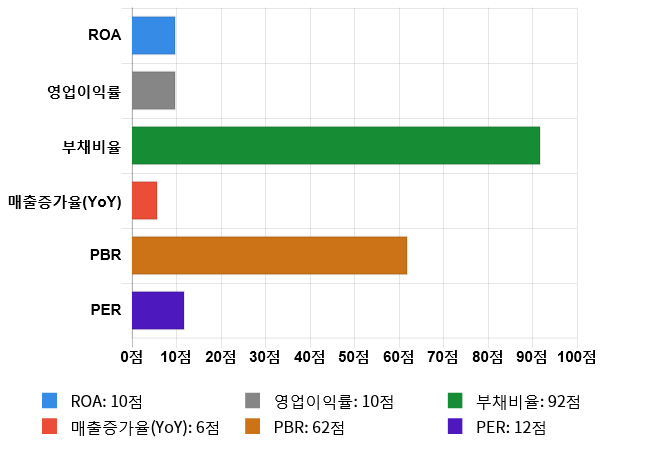 그러나 매출증가율(YoY)과 ROA는 아쉬움을 나타냈다.