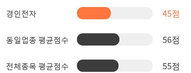 이는 동일 업종 평균점수인 56점과 시장 평균점수인 55점를 하회하는 수치였다.