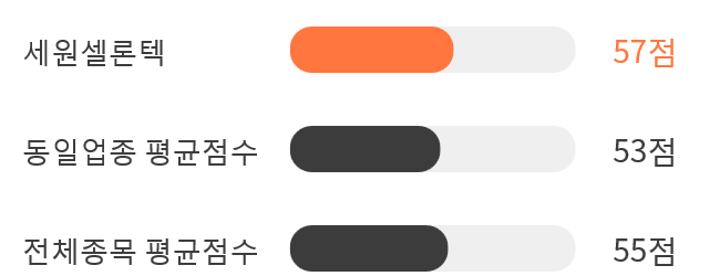 AI 인공지능 분석을 통한 세원셀론텍의 종목 종합 스코어는 57점을 기록했다.