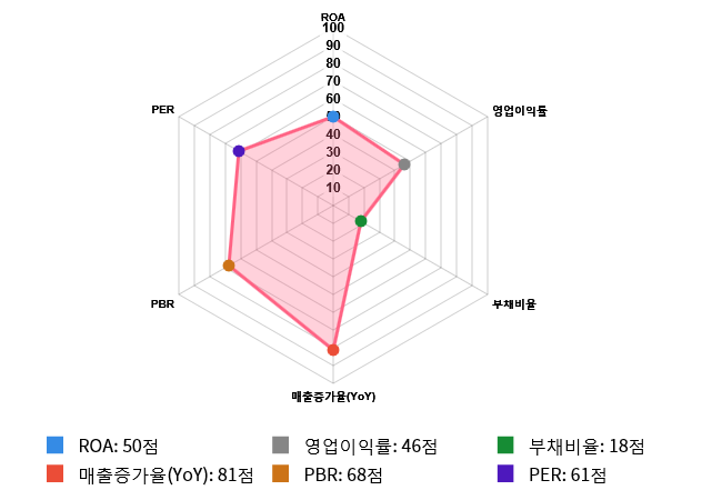 (위의 AI인공지능 점수는 재무 데이터를 기반으로 전체 상장 종목과 비교/분석하여 도출한 점수로 높은 점수가 반드시 높은 수익률을 보장하지 않습니다. 위의 자료는 당사의 추천 종목이 아니며, 투자 시 참고용으로 제시해드리는 것입니다.)