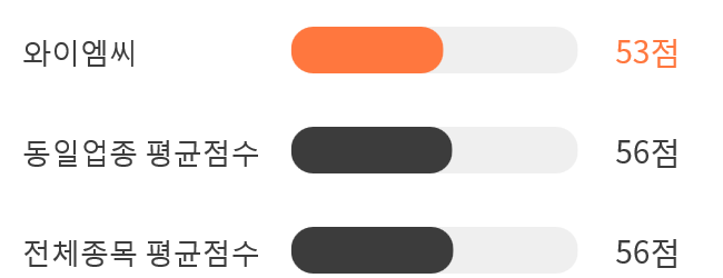 이는 동일 업종 평균점수인 56점과 시장 평균점수인 56점를 하회하는 수치였다.