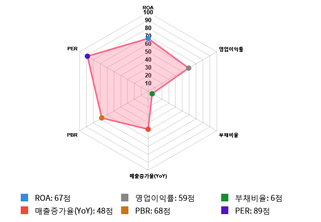 그러나 부채비율과 매출증가율(YoY)은 아쉬움을 나타냈다.