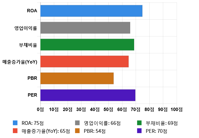 (위의 AI인공지능 점수는 재무 데이터를 기반으로 전체 상장 종목과 비교/분석하여 도출한 점수로 높은 점수가 반드시 높은 수익률을 보장하지 않습니다. 위의 자료는 당사의 추천 종목이 아니며, 투자 시 참고용으로 제시해드리는 것입니다.)