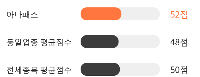 이는 동일 업종 평균점수인 48점과 시장 평균점수인 50점를 상회하는 수치였다.
