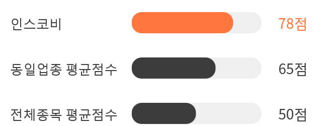 AI 인공지능 분석을 통한 인스코비의 종목 종합 스코어는 78점을 기록했다.