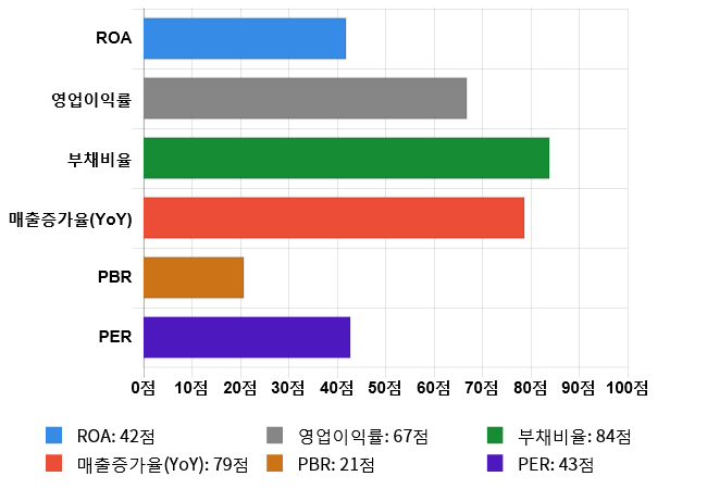 (위의 AI인공지능 점수는 재무 데이터를 기반으로 전체 상장 종목과 비교/분석하여 도출한 점수로 높은 점수가 반드시 높은 수익률을 보장하지 않습니다. 위의 자료는 당사의 추천 종목이 아니며, 투자 시 참고용으로 제시해드리는 것입니다.)