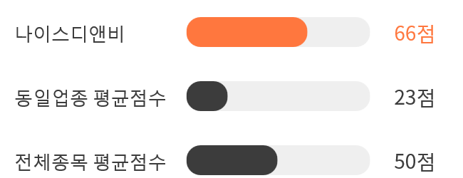 AI 인공지능 분석을 통한 나이스디앤비의 종목 종합 스코어는 66점을 기록했다.