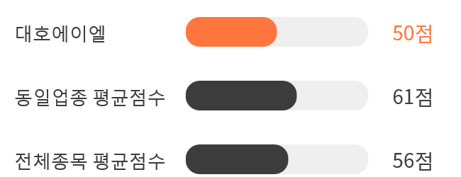 이는 동일 업종 평균점수인 61점과 시장 평균점수인 56점를 하회하는 수치였다.