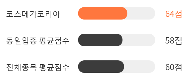 이는 동일 업종 평균점수인 58점과 시장 평균점수인 60점를 상회하는 수치였다.
