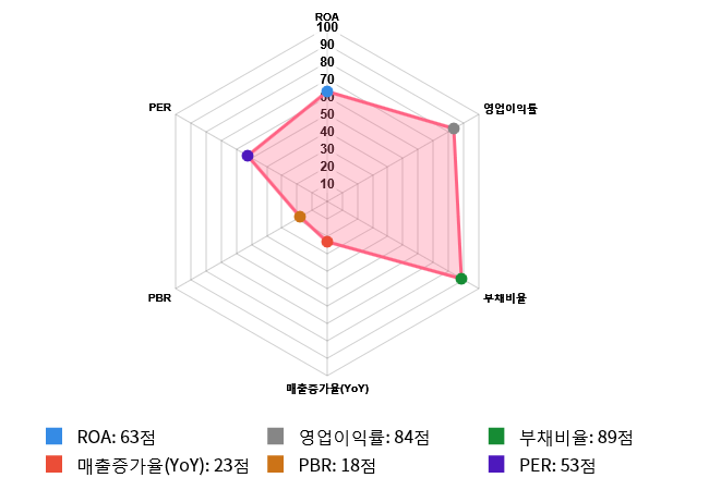 그러나 PBR과 매출증가율(YoY)은 아쉬움을 나타냈다.