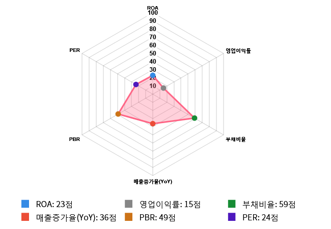 (위의 AI인공지능 점수는 재무 데이터를 기반으로 전체 상장 종목과 비교/분석하여 도출한 점수로 높은 점수가 반드시 높은 수익률을 보장하지 않습니다. 위의 자료는 당사의 추천 종목이 아니며, 투자 시 참고용으로 제시해드리는 것입니다.)