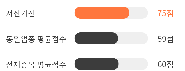 AI 인공지능 분석을 통한 서전기전의 종목 종합 스코어는 75점을 기록했다.