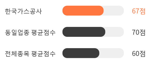AI 인공지능 분석을 통한 한국가스공사의 종목 종합 스코어는 67점을 기록했다.