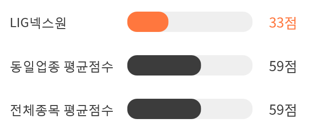 이는 동일 업종 평균점수인 59점과 시장 평균점수인 59점를 하회하는 수치였다.