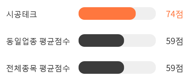 AI 인공지능 분석을 통한 시공테크의 종목 종합 스코어는 74점을 기록했다.
