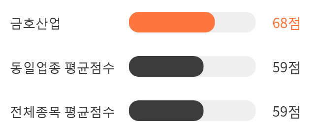 AI 인공지능 분석을 통한 금호산업의 종목 종합 스코어는 68점을 기록했다.
