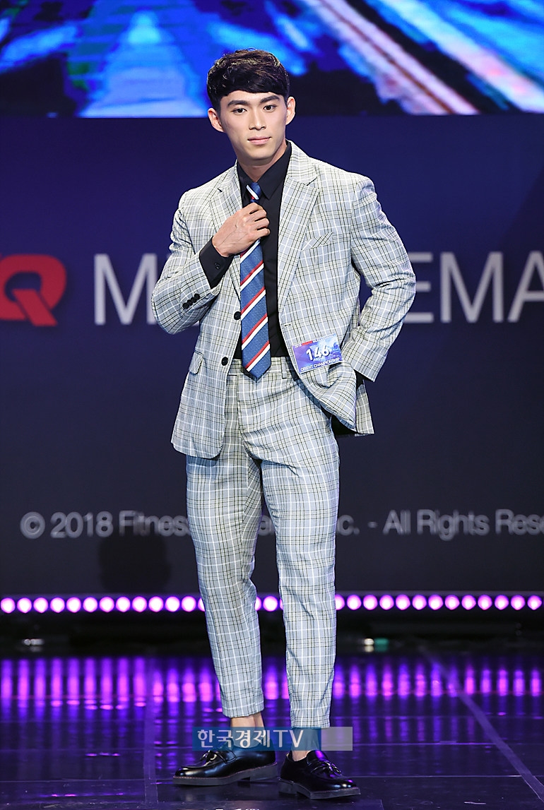 이채곤이 28일 서울 건국대학교 새천년관 대공연장에서 단백질 보충제 전문기업 스포맥스(SPOMAX)가 주최, 남성 잡지 맥심(MAXIM KOREA)이 후원한 `2018 맥스큐 머슬마니아 오리엔트 챔피언십(2018 MAXQ MUSCLEMANIA Orient Championship)`에서 커머셜모델 부문에 출전, 포즈를 취하고 있다.