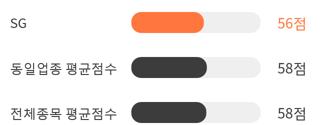 AI 인공지능 분석을 통한 SG의 종목 종합 스코어는 56점을 기록했다.