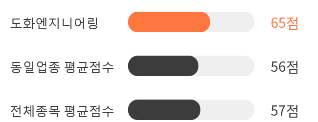 AI 인공지능 분석을 통한 도화엔지니어링의 종목 종합 스코어는 65점을 기록했다.