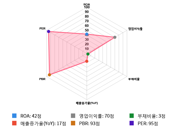그러나 부채비율과 매출증가율(YoY)은 아쉬움을 나타냈다.