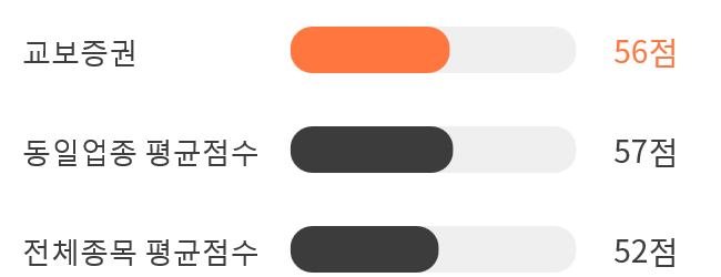 AI 인공지능 분석을 통한 교보증권의 종목 종합 스코어는 56점을 기록했다.