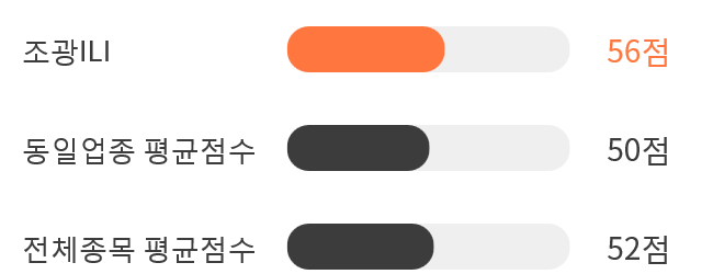 AI 인공지능 분석을 통한 조광ILI의 종목 종합 스코어는 56점을 기록했다.