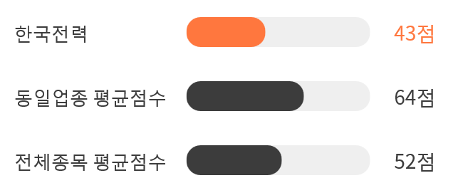AI 인공지능 분석을 통한 한국전력의 종목 종합 스코어는 43점을 기록했다.