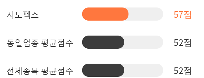 AI 인공지능 분석을 통한 시노펙스의 종목 종합 스코어는 57점을 기록했다.