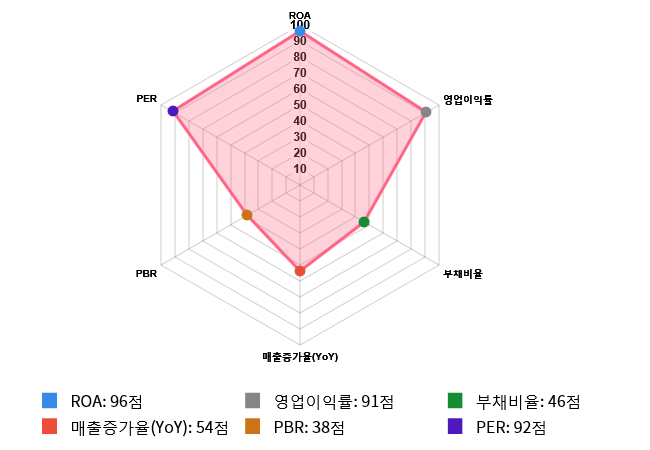 (위의 AI인공지능 점수는 재무 데이터를 기반으로 전체 상장 종목과 비교/분석하여 도출한 점수로 높은 점수가 반드시 높은 수익률을 보장하지 않습니다. 위의 자료는 당사의 추천 종목이 아니며, 투자 시 참고용으로 제시해드리는 것입니다.)