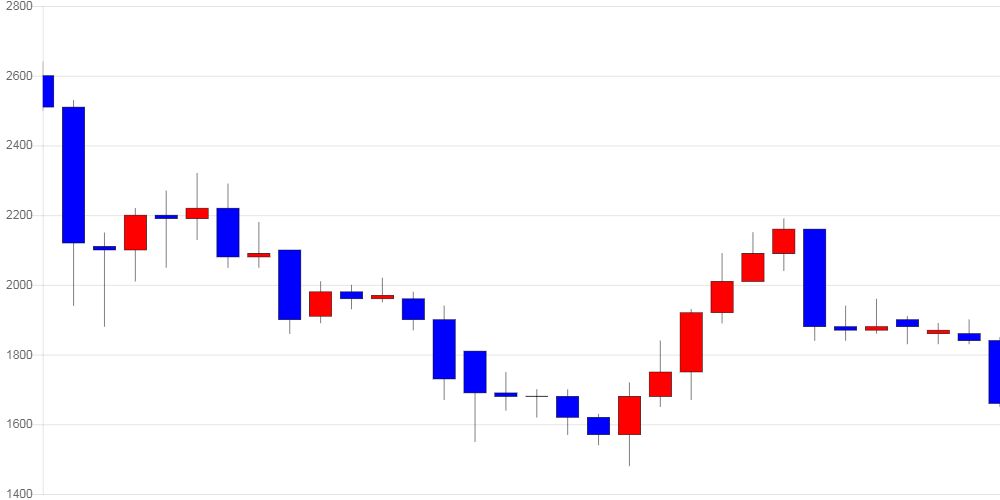 최근 1개월 고점은 2,640원이었으며, 현재 가격은 고점 대비 60.98% 수준이다.
