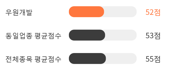 AI 인공지능 분석을 통한 우원개발의 종목 종합 스코어는 52점을 기록했다.