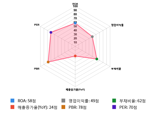 (위의 AI인공지능 점수는 재무 데이터를 기반으로 전체 상장 종목과 비교/분석하여 도출한 점수로 높은 점수가 반드시 높은 수익률을 보장하지 않습니다. 위의 자료는 당사의 추천 종목이 아니며, 투자 시 참고용으로 제시해드리는 것입니다.)